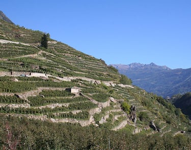 I vigneti della tenuta Pietro Triacca si estendono principalmente su terrazzamenti soleggiati, sul versante retico della Valtellina.